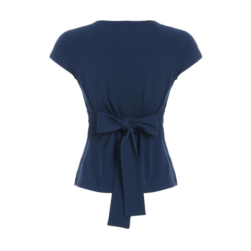 slim-fitted short sleeve top with a deep v-neckline and wrap-effect bust design. flattering and versatile, perfect for both casual looks and dressed-up styles.